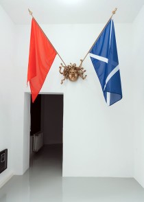 Kakokaloi, scaffold installation, speakers, flag fabric, sound, performance, dimensions variable Kakokaloi is first of all a Vexilological scramble. Inspired by a soap opera and tragedy-like story, the group invites the audience to express an instantaneous view on the mix