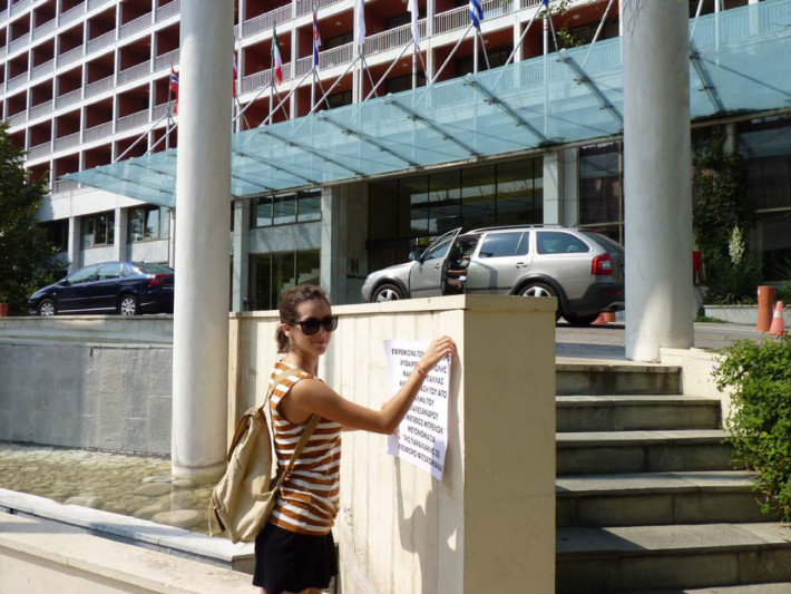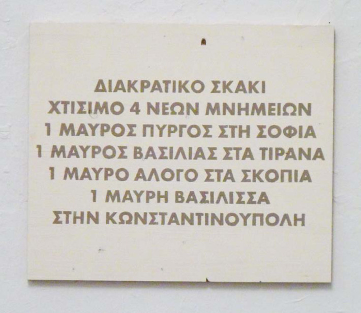 In the context of the exhibition Stopover in the ex-military camp KODRA which was related in terms of themes with the 100 year anniversary of the liberation of Thessaloniki, we collected from residents of the city proposals for actions and monuments for the city of today. We filtered those and we elaborated them based on the stereotypes that exist for the city of Thessaloniki. One of those proposals we took to the Municipality of Thessaloniki for implementation. At the same time we created posters with those proposals which we pasted on the spots in the city to which they made reference. During the exhibition, postcards with these proposals were made available to the visitors.