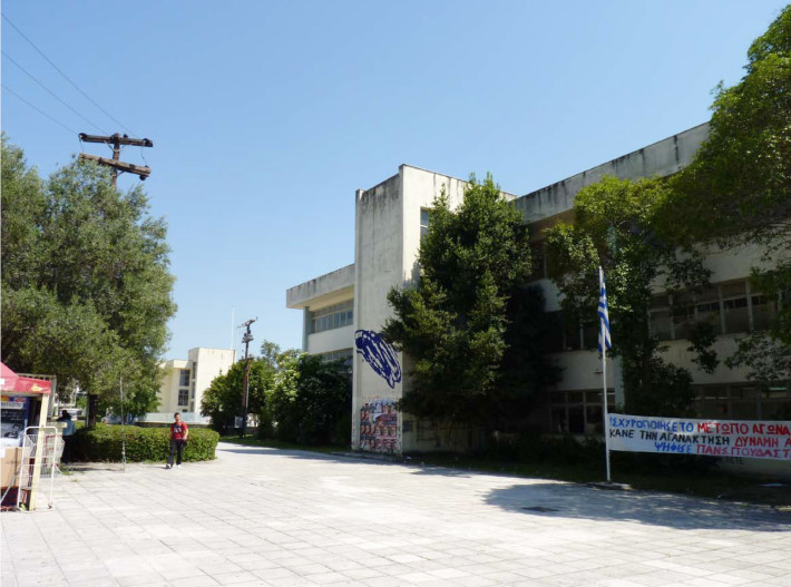 Στον τοίχο του πεζοδρόμου που βρίσκεται αριστερά ως προς την είσοδο του πανεπιστημιακού χώρου και σε σημείο ορατό από τον αυτοκινητόδρομο μεγεθύναμε και αντιγράψαμε μια μουτζούρα πραγματικών διαστάσεων 1 επί 1,5 εκατοστών. Η αντιγραφή έγινε επακριβώς με χρήση προτζέκτορα και σε χρώμα στιλού BIC.