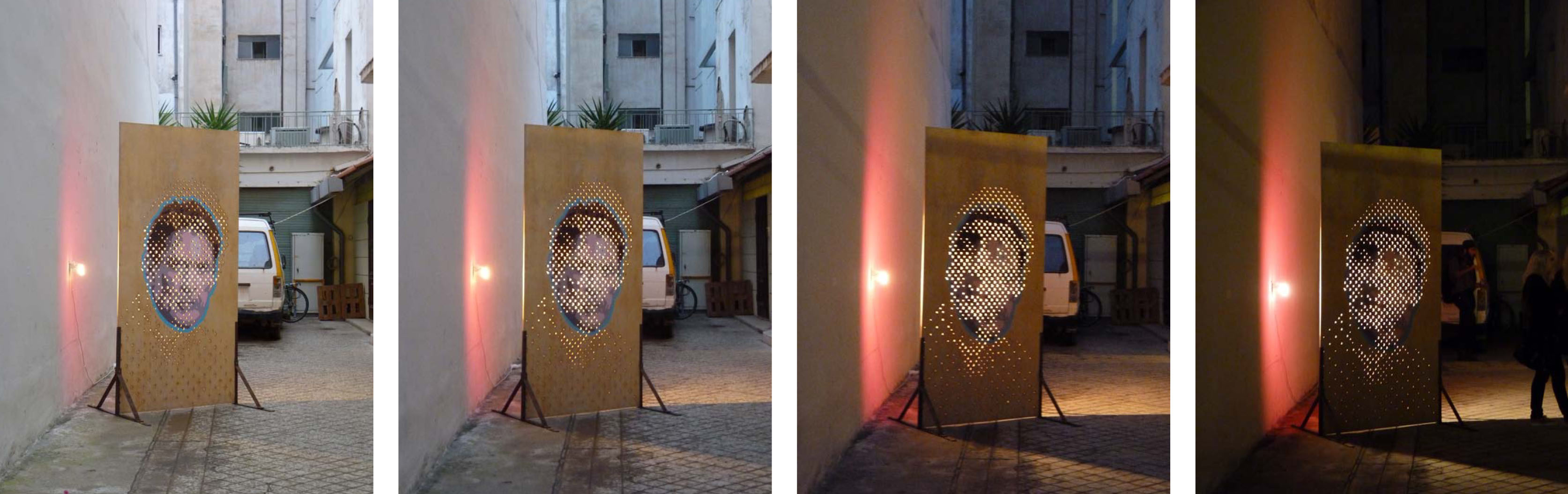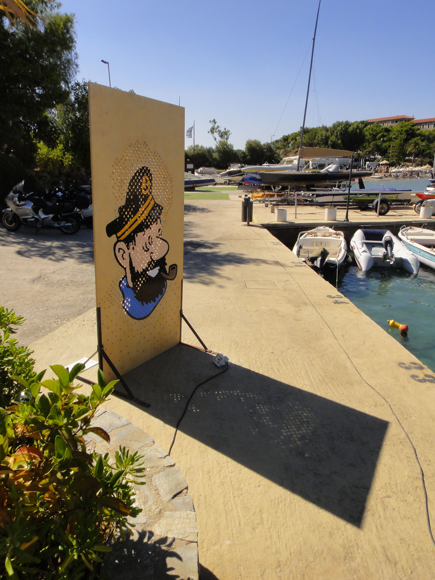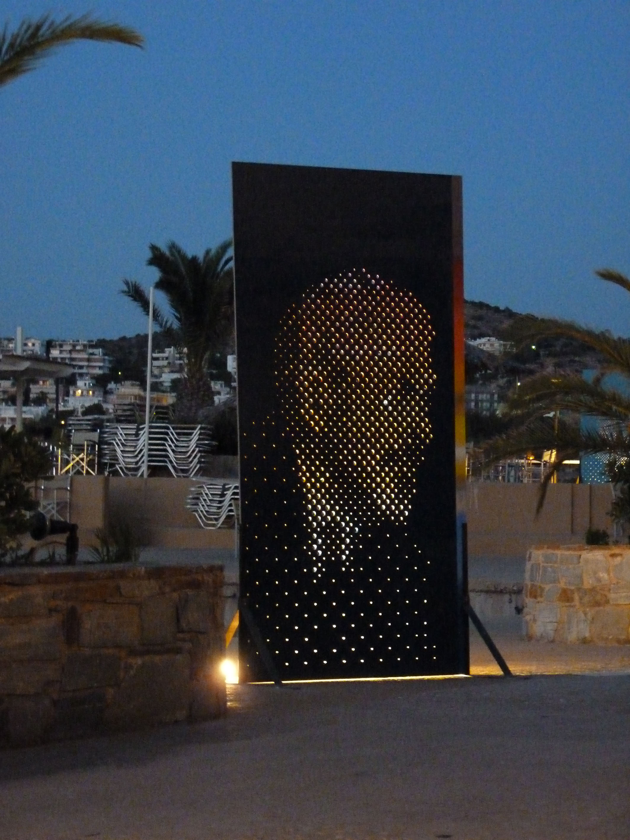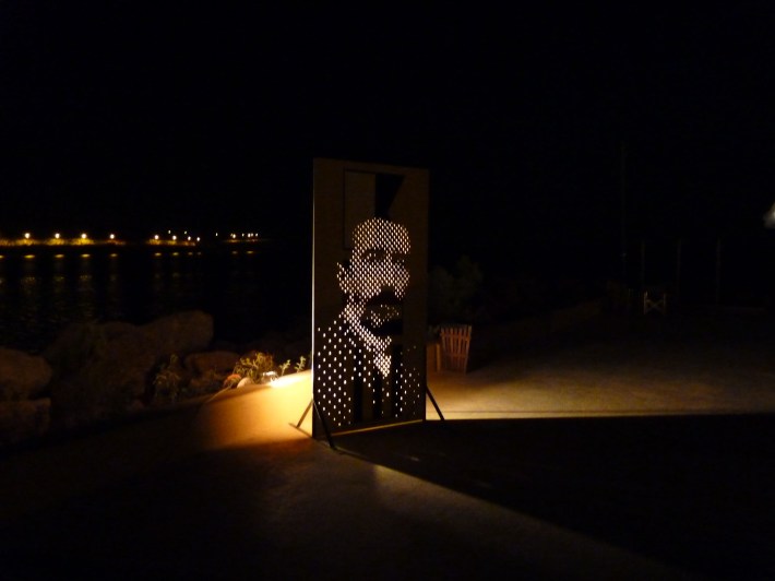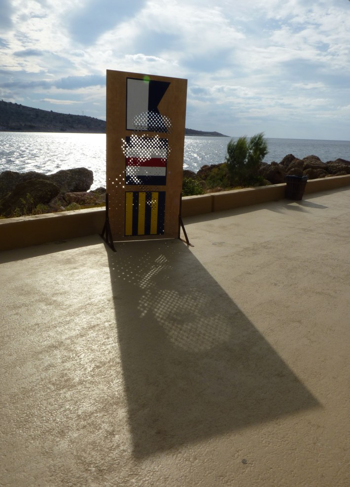 The sculptures are portraits of writers and poets like Joseph Conrad and Andreas Embiricos, following the group’s idea of creating role-models depending on context, space and occasion. The works are placed outdoors, letting the special sunlight of the area pierce them to form the portrait through light dots like a photographic raster. Unexpected combinations of portraits like the one of Jacques-Yves Cousteau with Mitch Buchannon or the one of Jules Verne with Captain Haddock realize cohesion conflicts and counterpoints referring to the history of literature and pop culture through the prism of the sea and navigation theme.