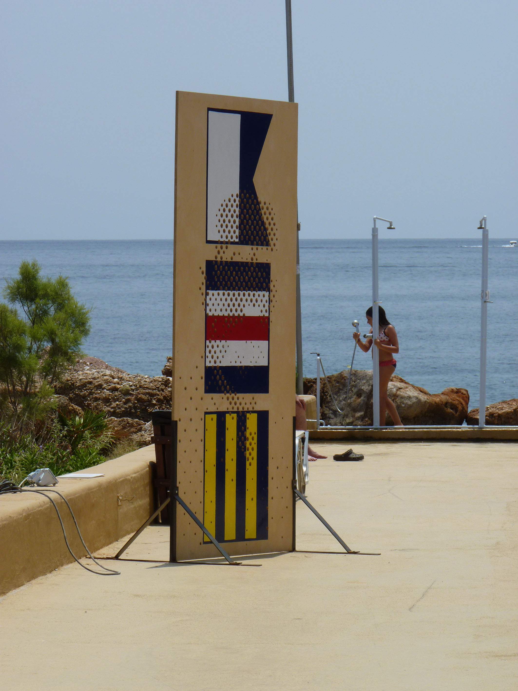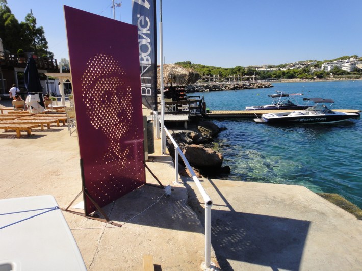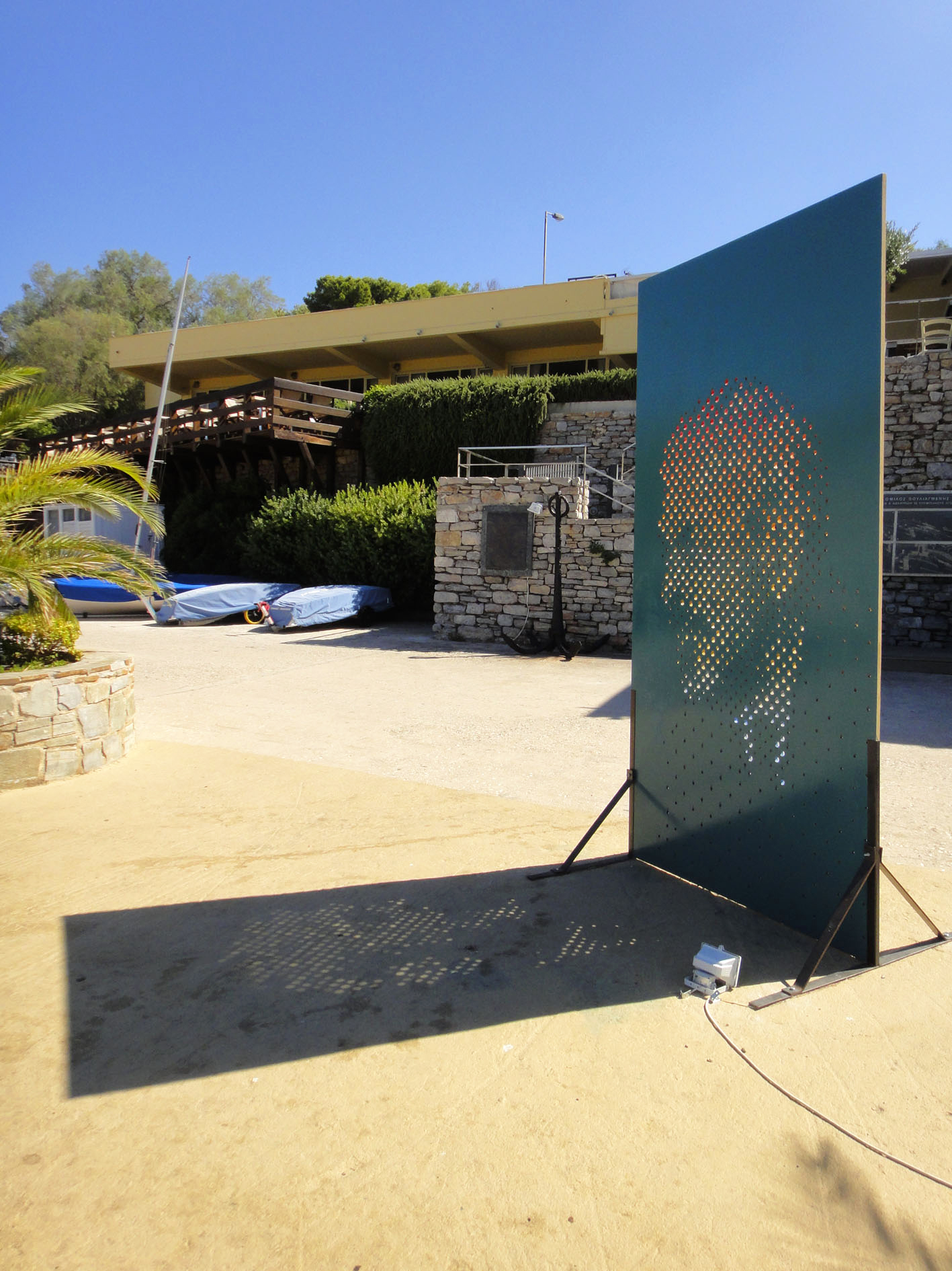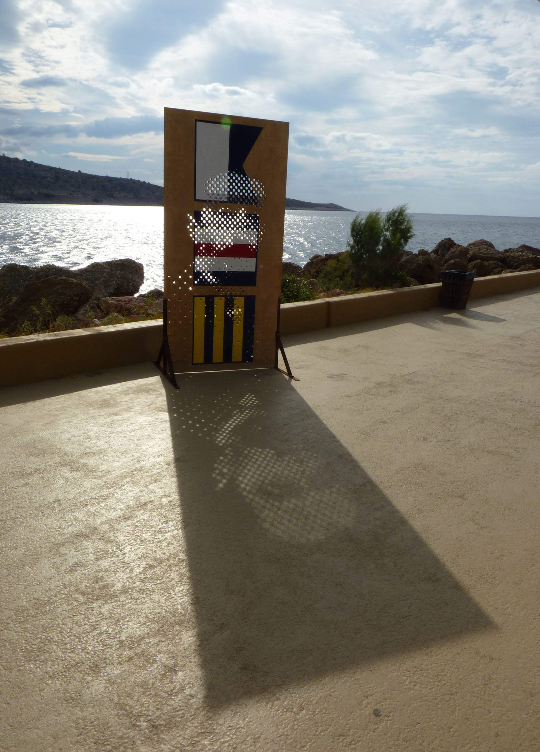 For the nautical club of Vouliagmeni we created four large scale wooden perforated sculptures that we painted over, in the subject of personalities that related their name to the sea and shipping.