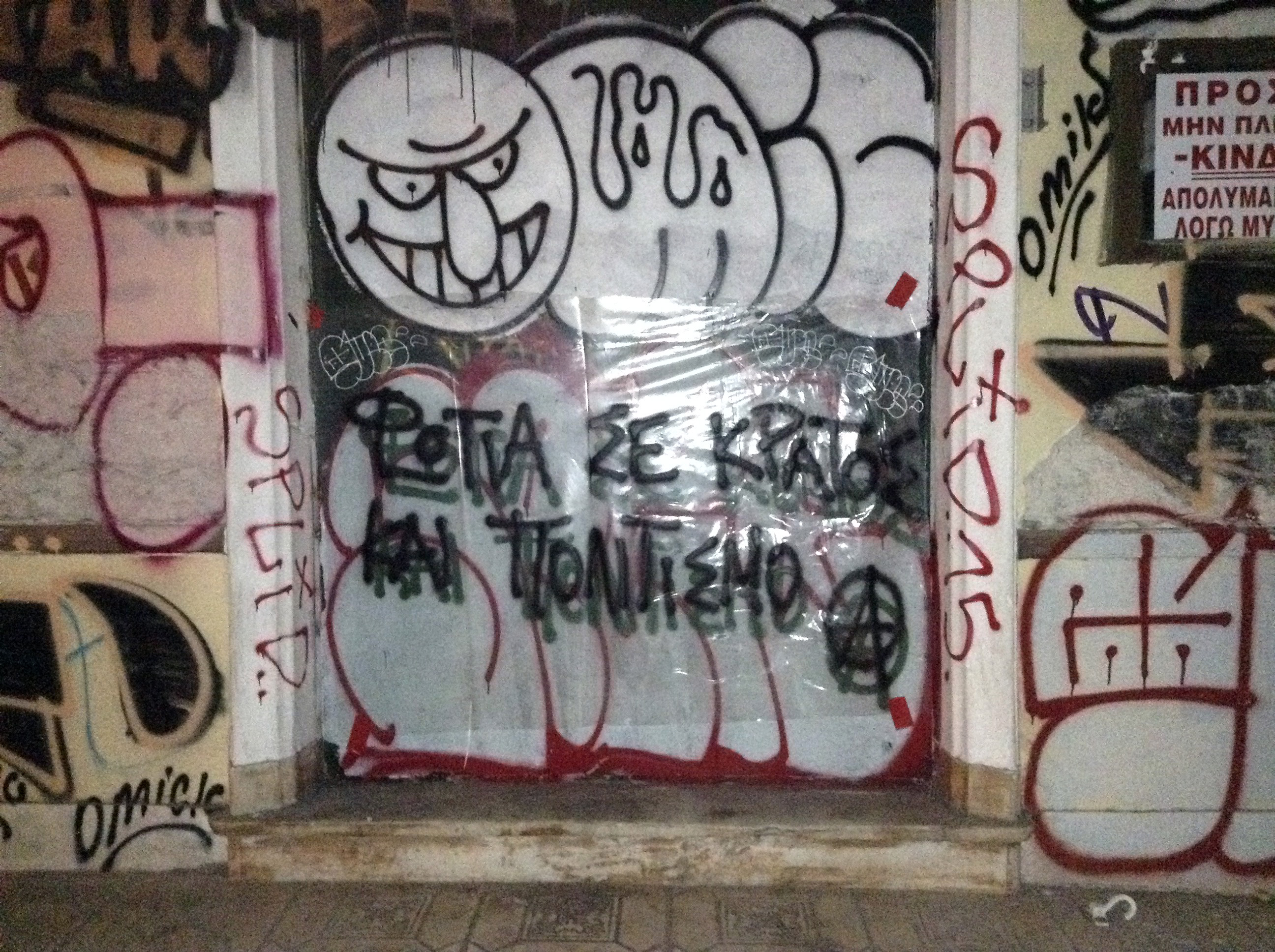 Σε ένα συνεχώς μεταβαλλόμενο μέρος και πριν από την επόμενη ανάπλασή του, επιλέξαμε να αποτυπώσουμε μια χρονική στιγμή του. Η αναπαραγωγή των ιχνών των συνθημάτων καταργεί τη μοναδικότητά και την εφημερότητά τους.