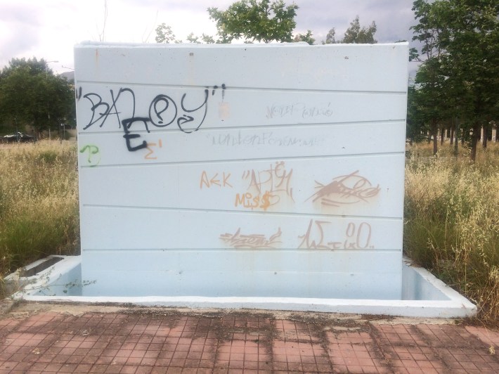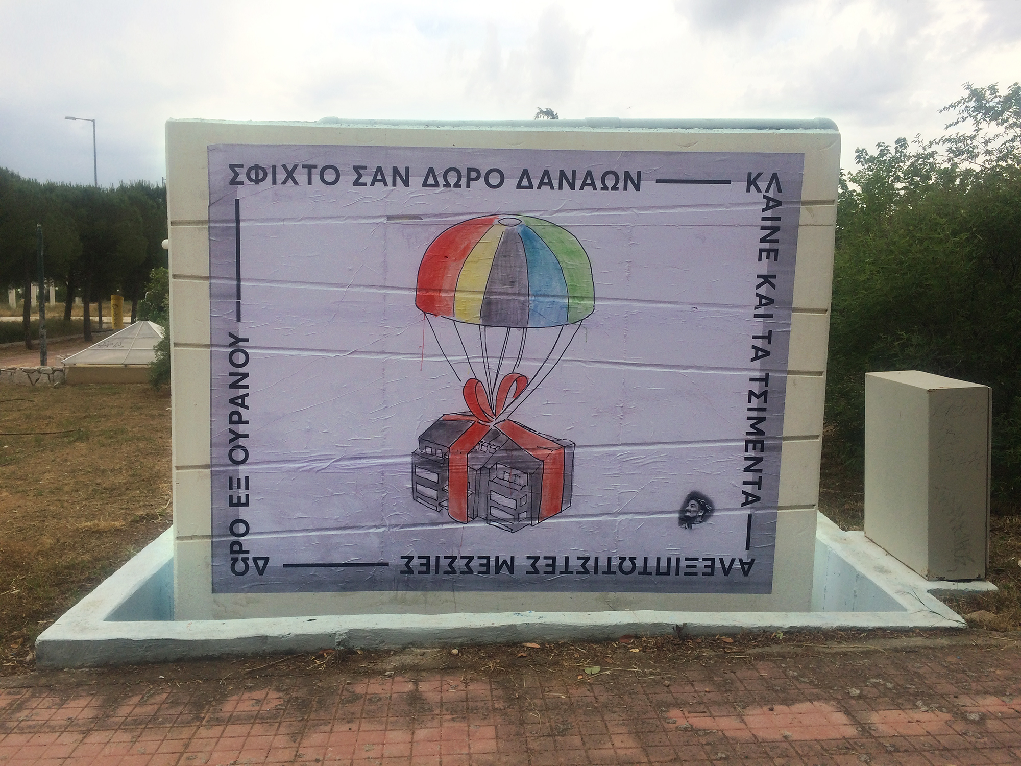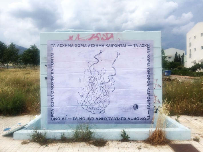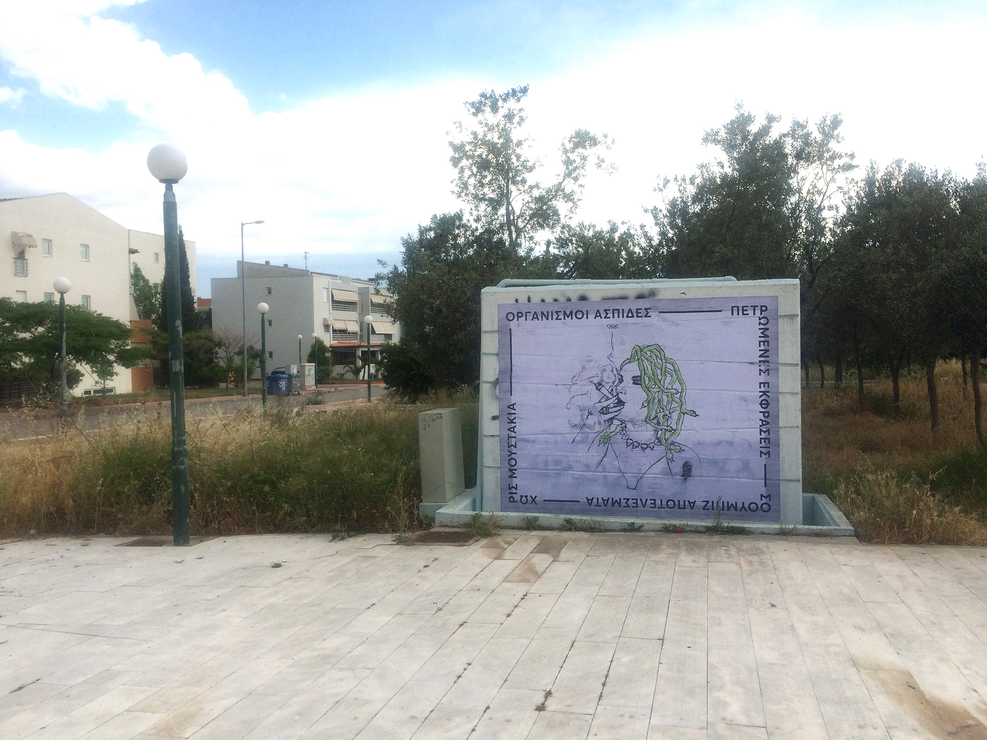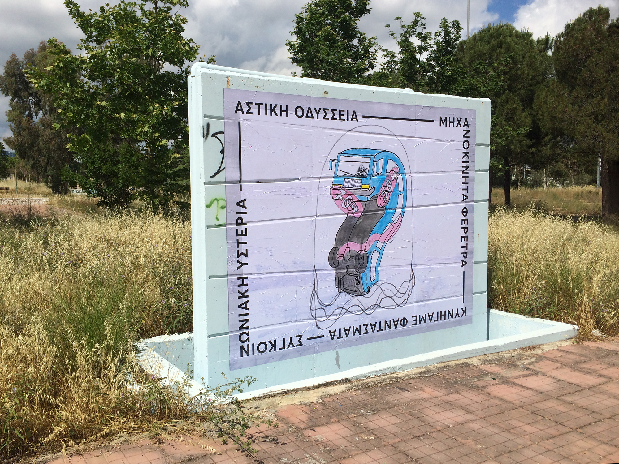 Arbit City conducted a workshop addressed to the youngsters of the Olympic Village Youth Generation aiming at collecting material for a billboard campaign in public space, as part of the SLOWER smaller WEAKER exhibition at the Olympic Village in Acharnes, Athens. The ideas and designs for the gigantic posters came along as in situ poetic phrases/haikus. Along with the overpainted posters in the public space, a photo album was exhibited documenting the whole process as well as details of the village surroundings. SLOWER smaller WEAKER group exhibition was held in the spring of 2018 . It was curated by Alexandra Stresna under the auspices of the APEXART non-profit organisation in New York.